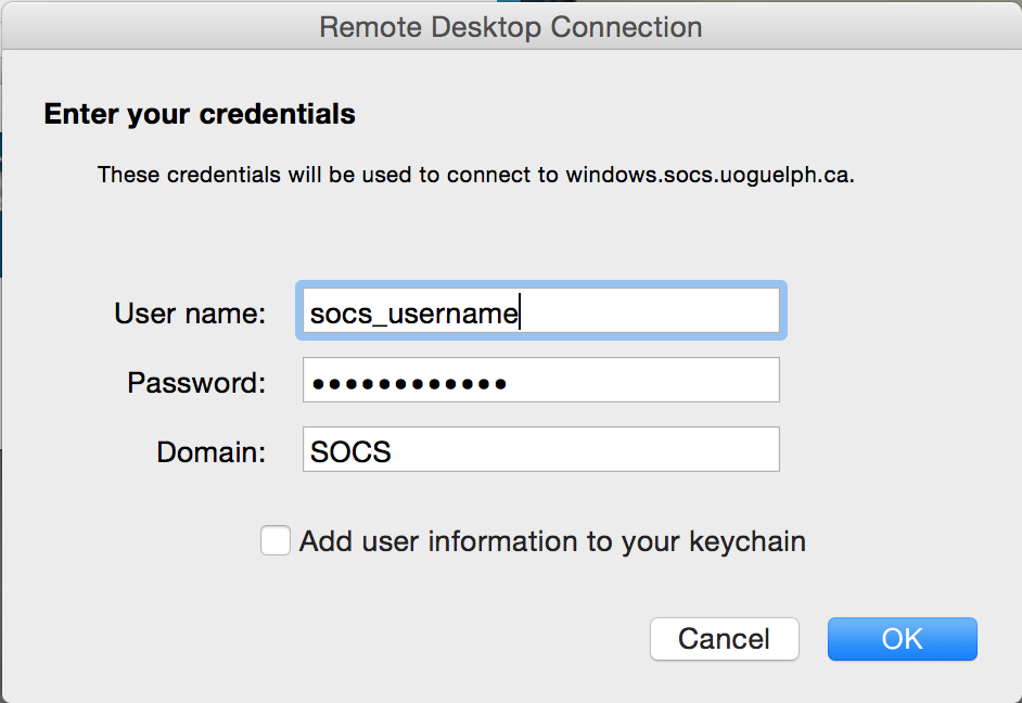 - Enter “windows.socs.uoguelph.ca” in the “Computer” field.